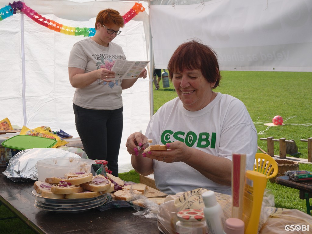 A sátrunknál volt lehetőség kültéri játékok mellett a tagtársunk készítette fenséges paprikás krumplit, ínycsiklandó házi sajtos rudat vagy éppen puszedlit kóstolni, és elfogyott csaknem az összes házi szörp is, amik a környező akácos, bodzás, valamint eperföld szolgáltatta alapanyagokból készültek.