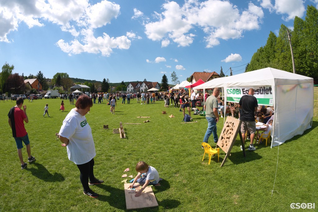Rögtön megtalálták a gyermekes családok a sátrunkat, köszönhetően a sok kültéri játéknak, amiket a Hajnalcsillag Értékőrző Egyesület kölcsönzött nekünk, és a gyereksaroknak, amihez két család felajánlásából tudtunk gyermekbútorokat biztosítani.