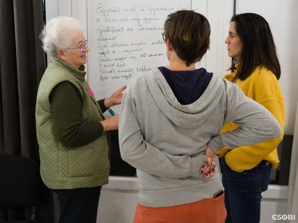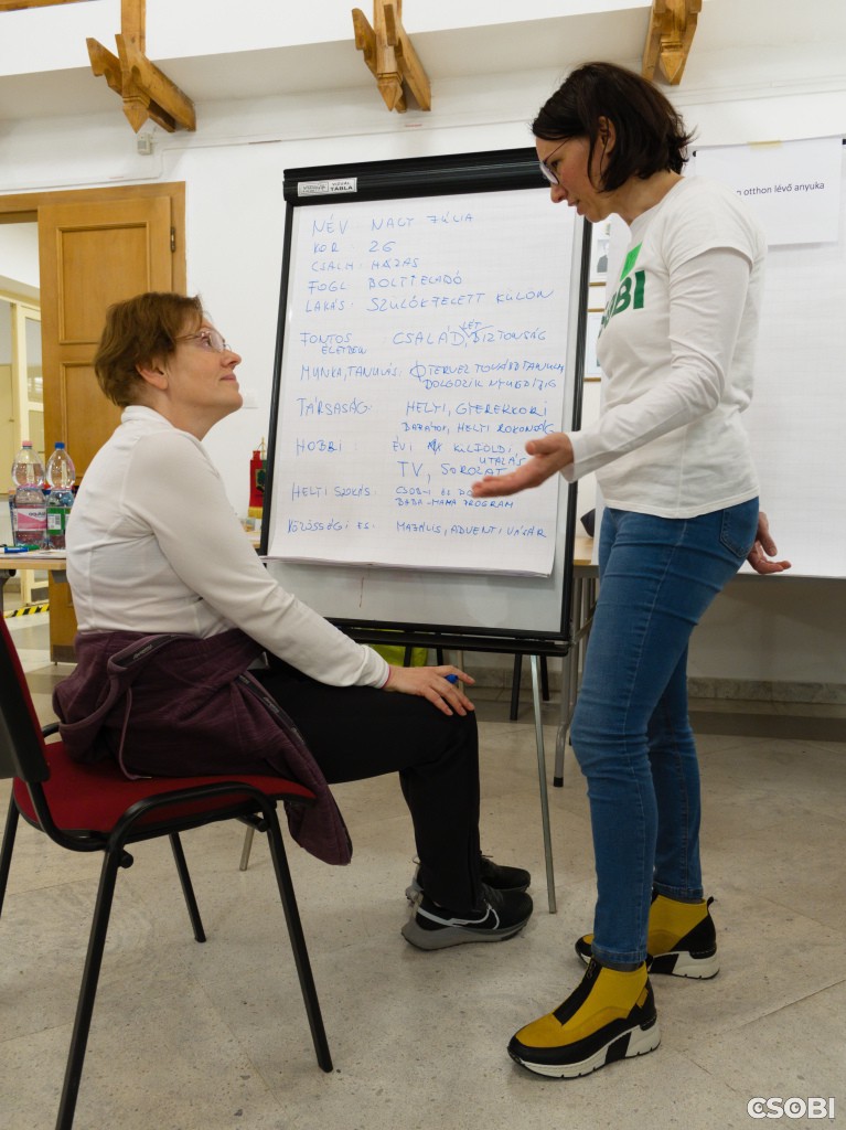 Az este fő eleme egy izgalmas, szimulációs gyakorlat volt: a résztvevők csoportokba rendeződve a legjobb képességük szerint beleképzelték magukat néhány tipikus csobánkai lakos mindennapjaiba. Ezekről a fiktív karakterekről (perszónákról) részletes leírást készítettek.